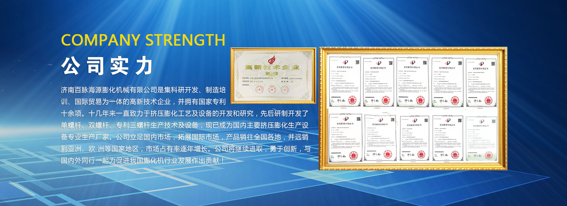 濟南百脈海源膨化機械有限公司坐落在山東省會—濟南的東部,瓷都淄博的西鄰,南北接壤 309 國道與濟青高速,地理位置優越,交通便利,文化底蘊敦厚,是國家能源設備的重要生產基地,也是宋代著名女詞人—李清照的故鄉。